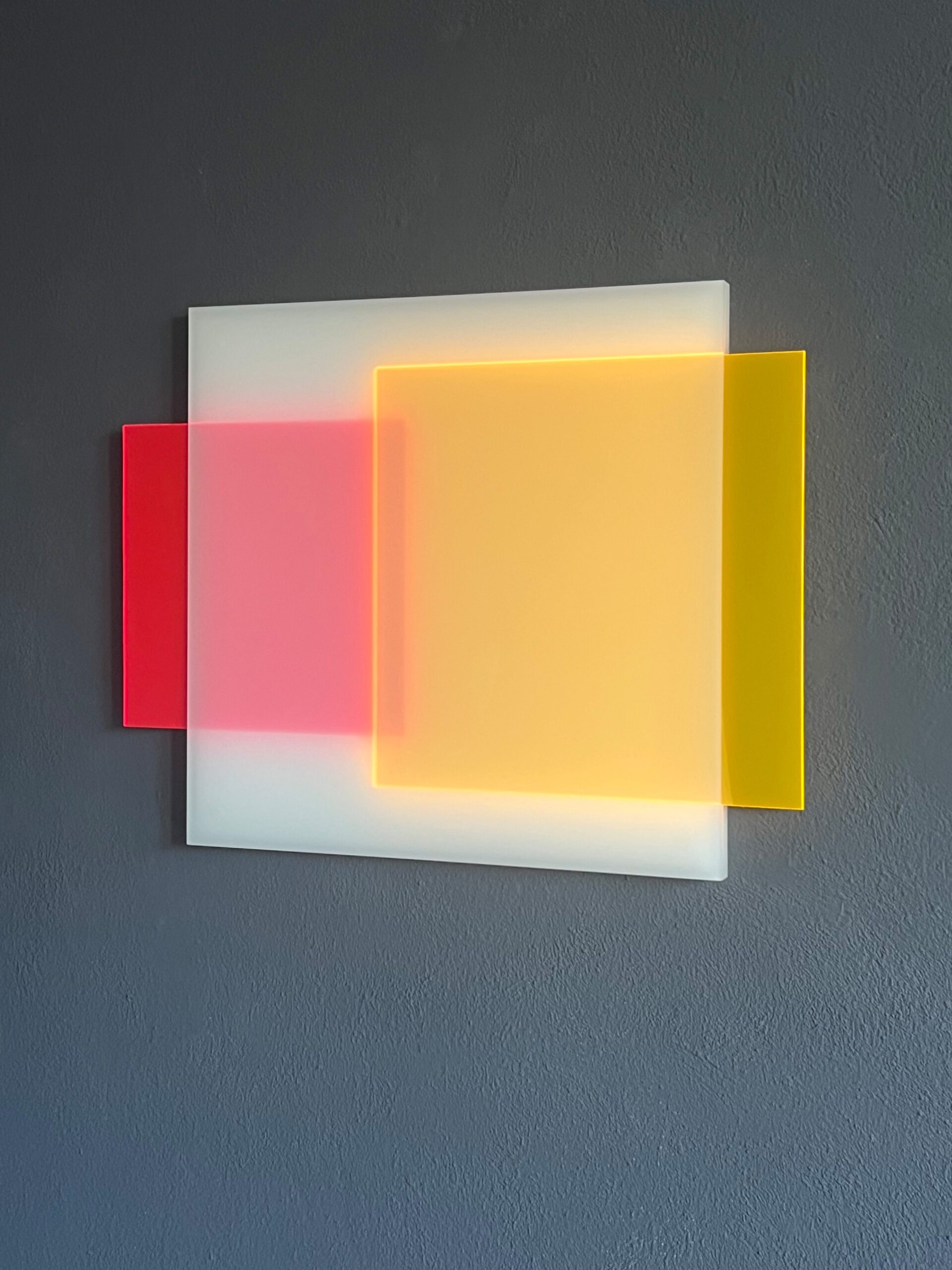 Wandrelief, 6teilig, rot und orange fluoreszierendes und satiniertes Plexiglas